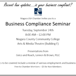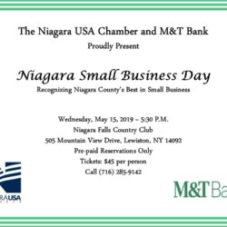 The Niagara USA Chamber and Niagara University cordially invite you to our signature event: Economic Vision 2020 and Beyond: Creating a Vibrant Future Thursday, November 21, 2019 7:30 AM – 9:30 PM Russell J. Salvatore Dining Commons Niagara University 5795 Lewiston Road, Lewiston NY Featured Speakers: Mr. Gary Keith, Vice President & Regional Economist, M&T […]